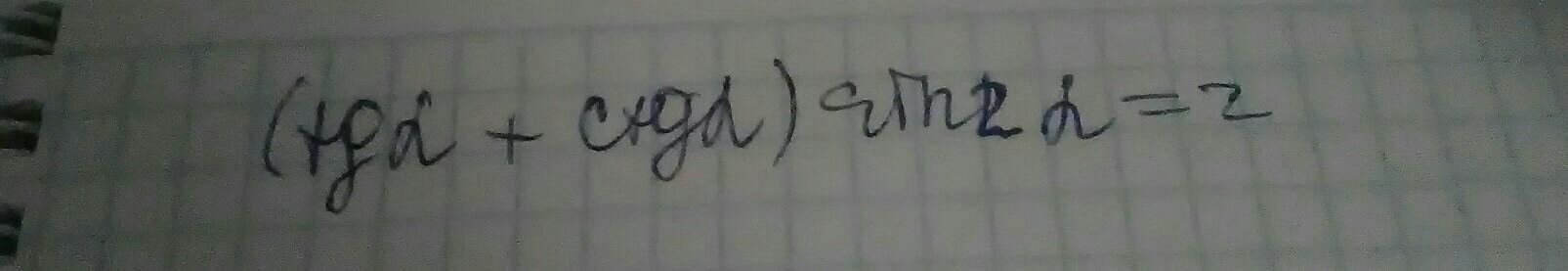 (tgalpha+ctgalpha)sin(2alpha)=(frac{sinalpha}{cosalpha}+frac{cosalpha}{sinalpha})2sinalpha cosalpha=\\2(frac{sinalpha}{cosalpha}cdot sinalpha cosalpha+frac{cosalpha}{sinalpha}cdot sinalpha cosalpha)=2(sin^2alpha+cos^2alpha)=2cdot1=2\\
