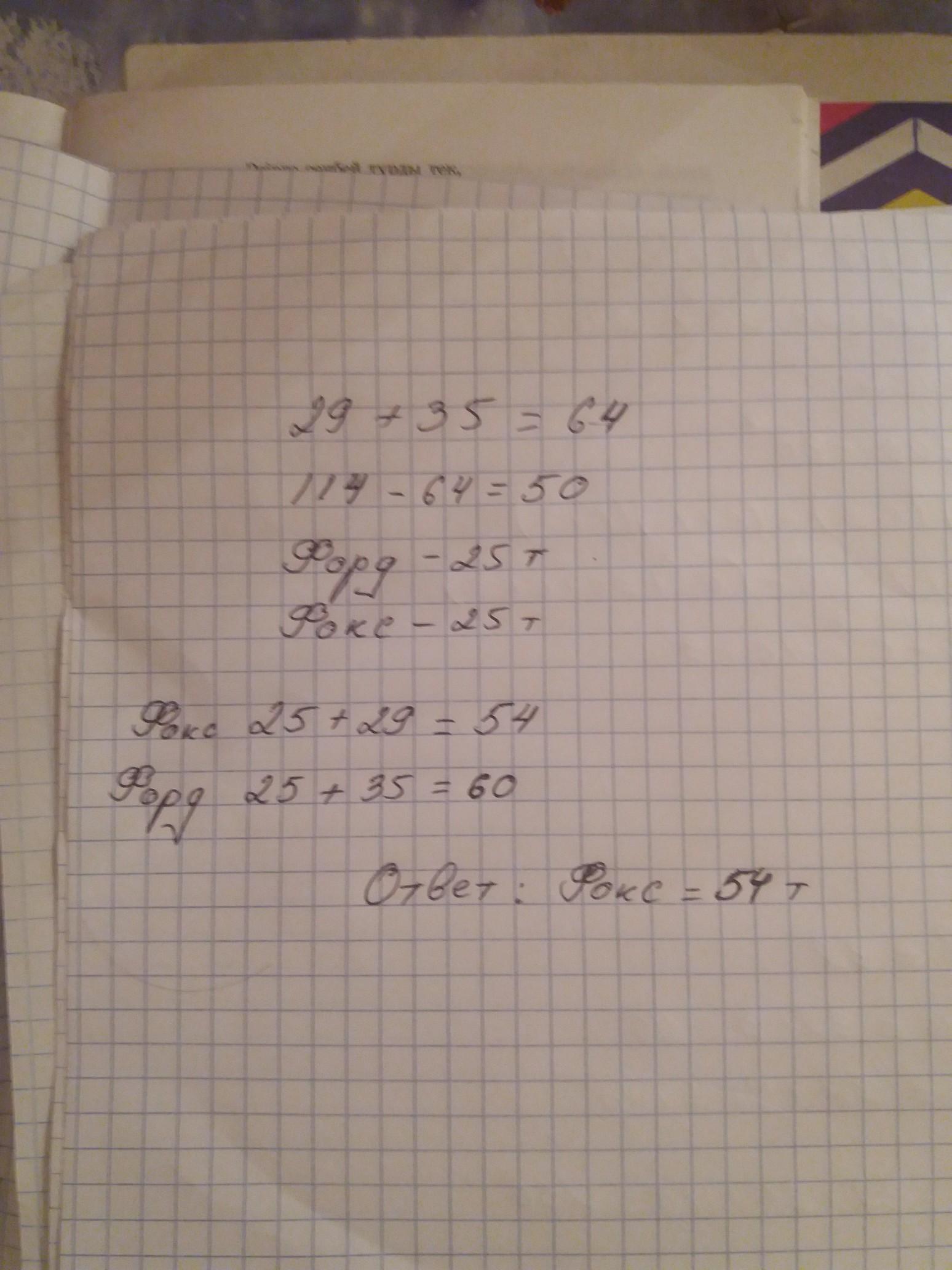 В начале года у мистера Фокса и мистера Форда было всего 114 чистых тетрадей. К началу весны мистер Фокс исписал 29 тетрадей, а мистер Форд 35, после чего у них осталось одинаковое количество чистых тетрадей. Сколько чистых тетрадей было у мистера Фокса в начале года?
