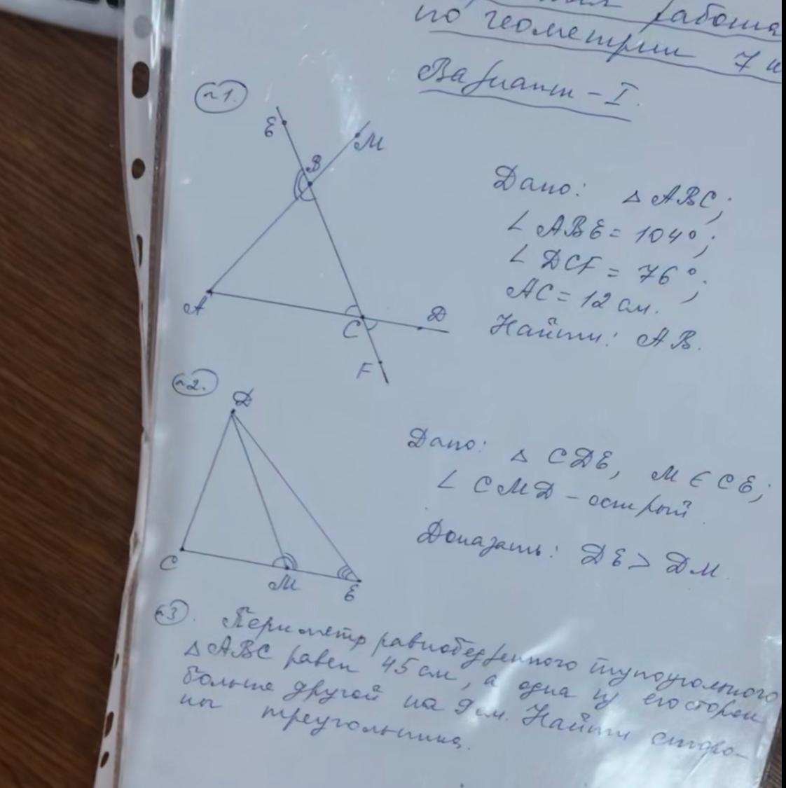 1)угол АВС = 180°-104°=76° т. к. угол АВС и угол АВЕ смежные