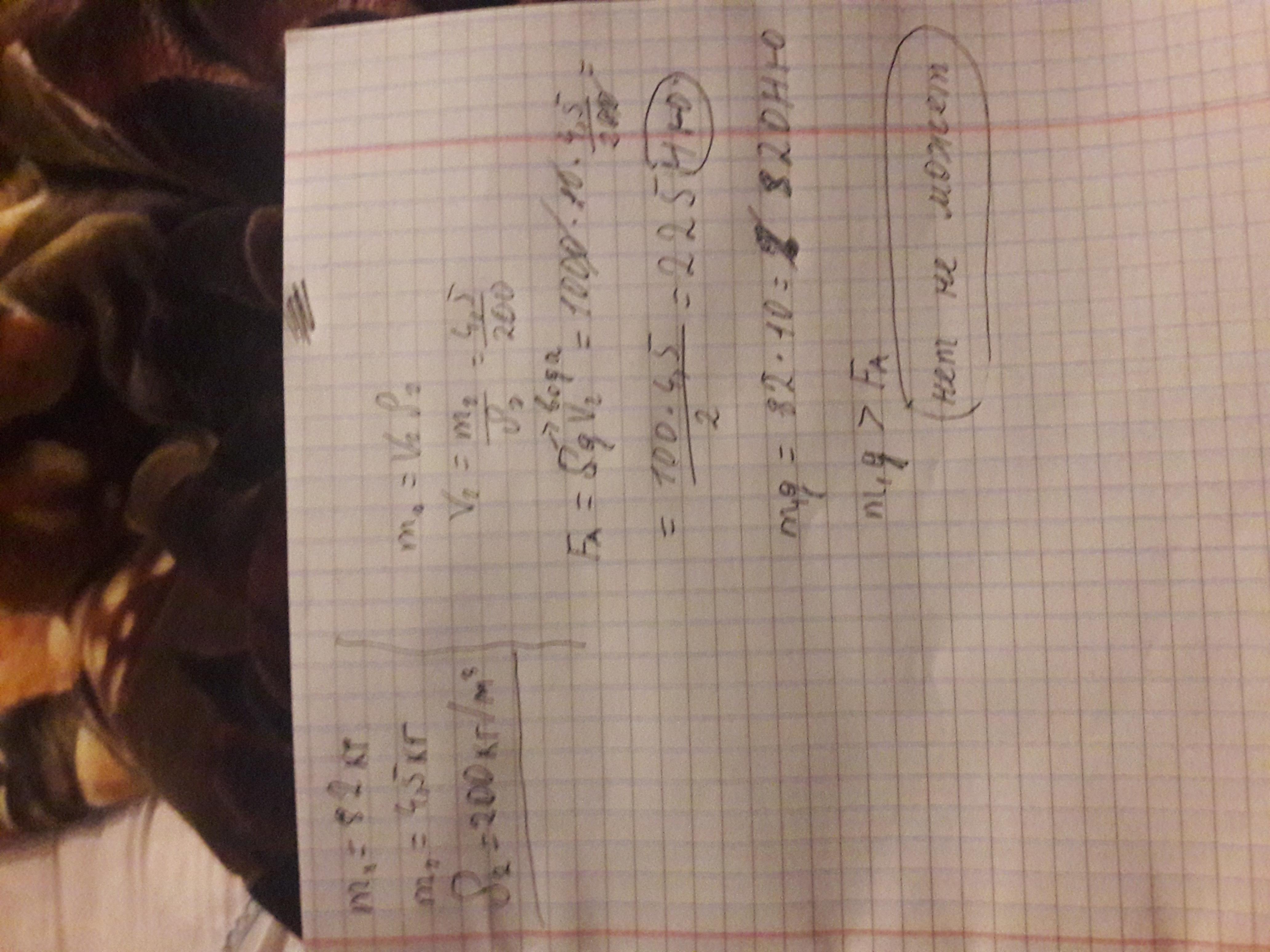 Сможет ли человек,масса тела которого 82 кг,держаться на воде при помощи пробкового спасательного пояса массой 4,5 кг?