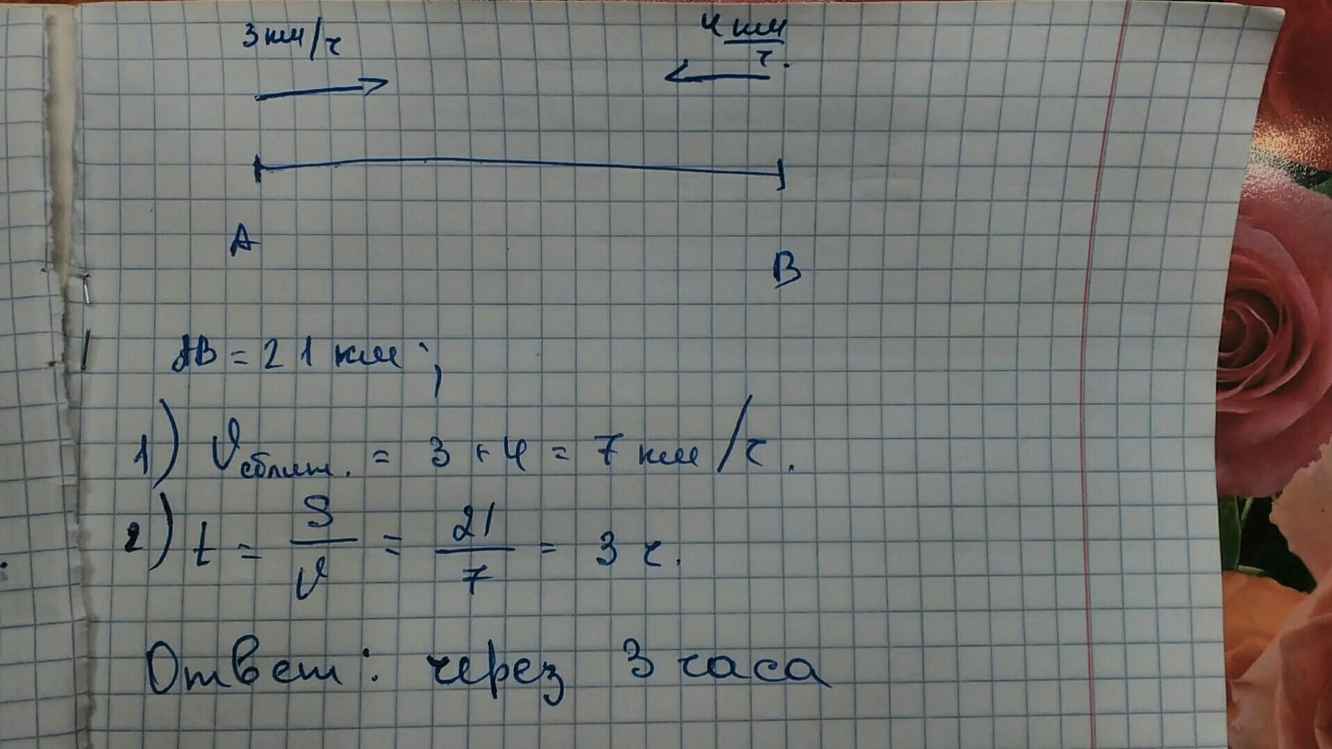 1) 3 + 4 = 7 (км/ч) - скорость сближения;