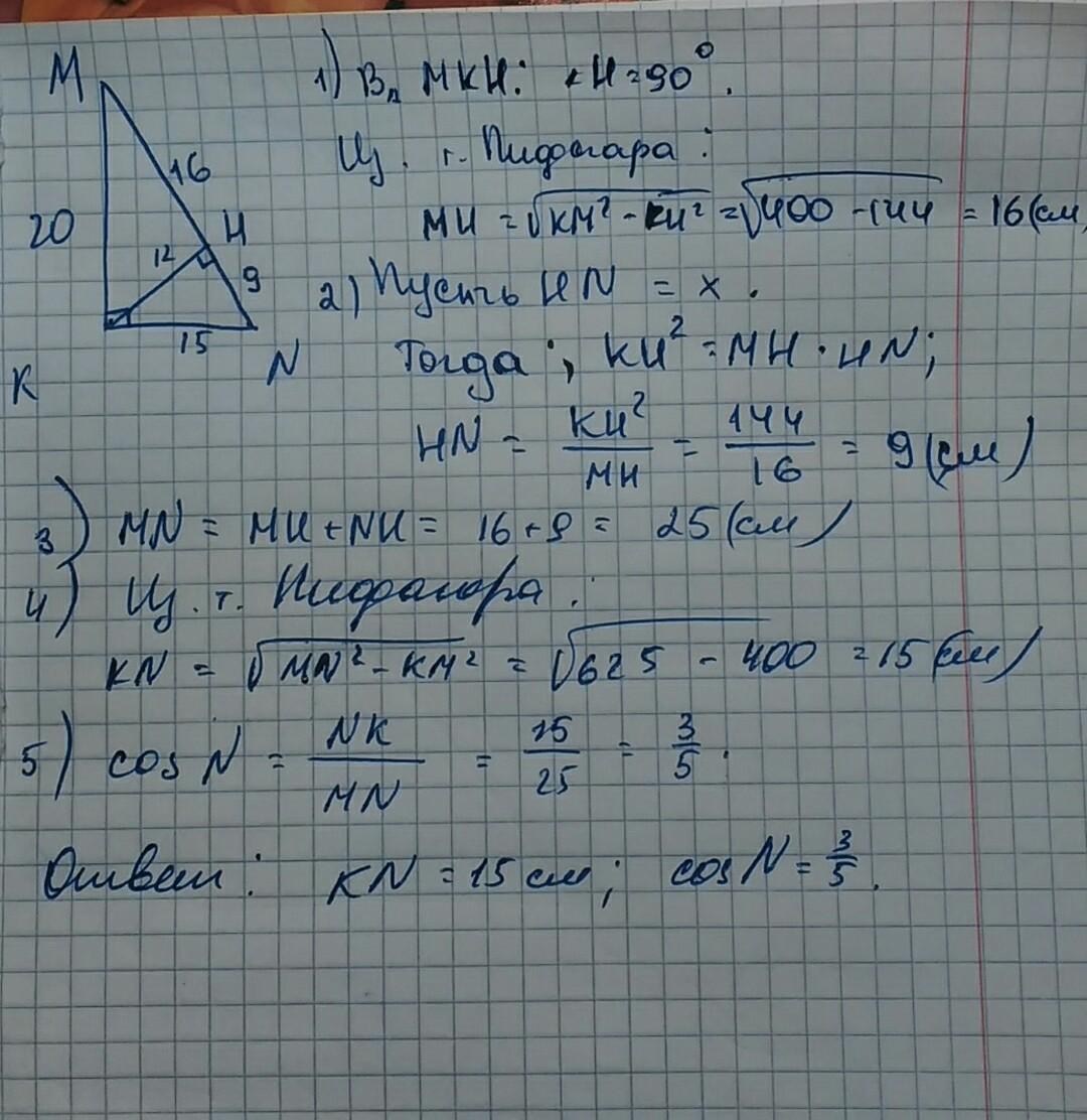 MH=√KM²-KH²=√20²-12²=16 т. Пифагора для КНМ