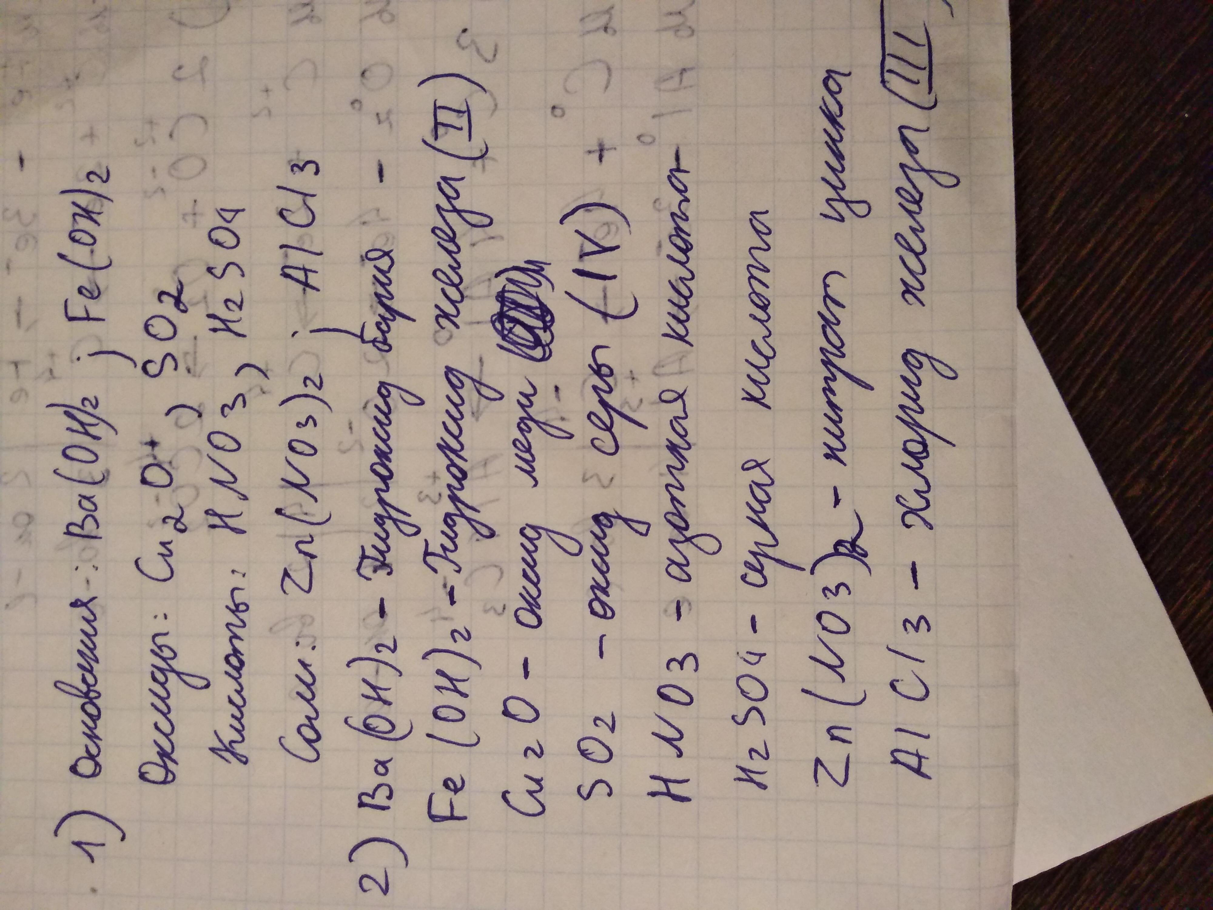 Ba(OH)2, Zn(NO3)2, HNO3, SO2, Cu2O, Fe(OH)2, H2SO4, AlCl3