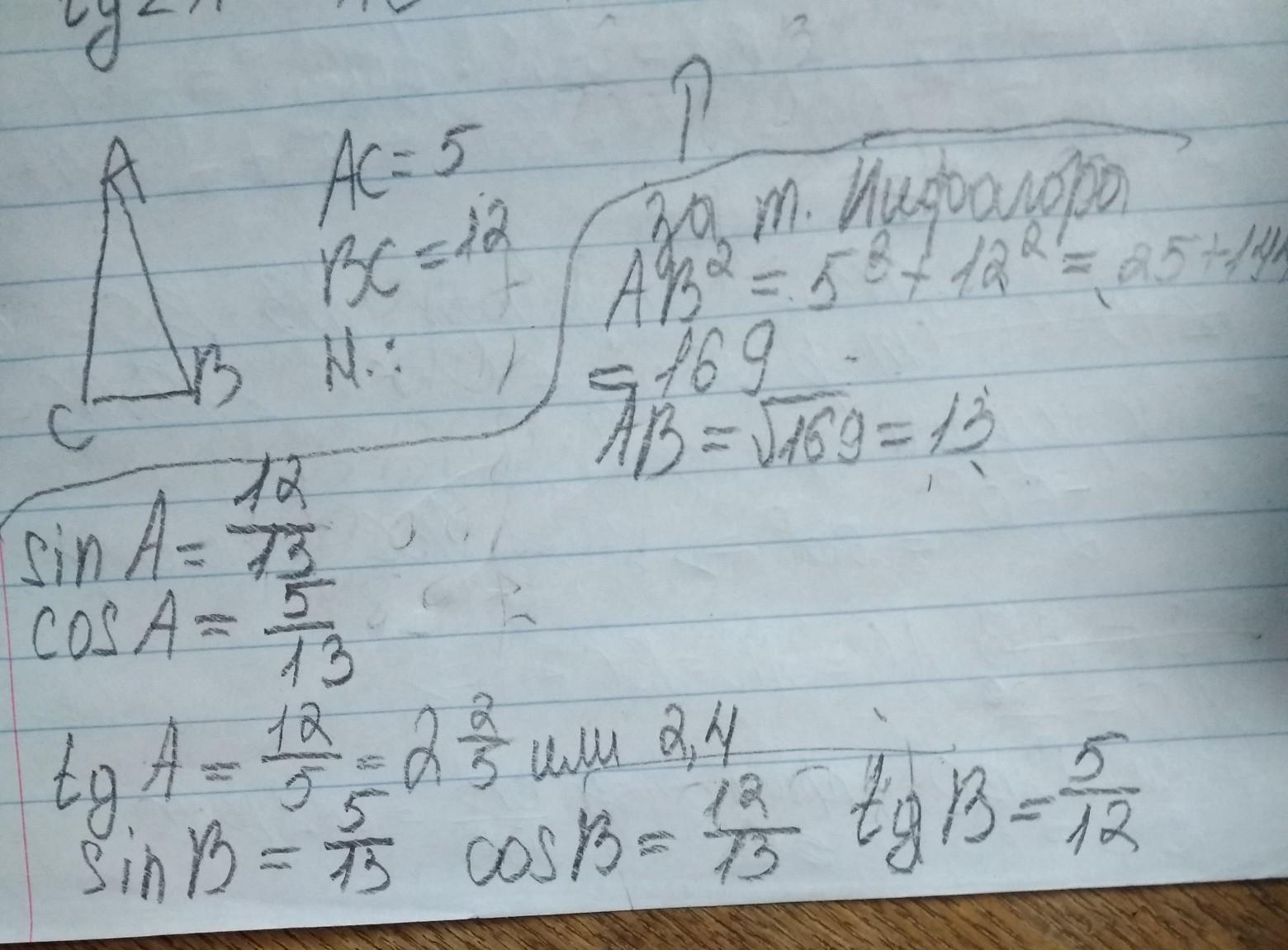 Для начала узнаем чему равна сторона АВ(по теореме Пифагора)