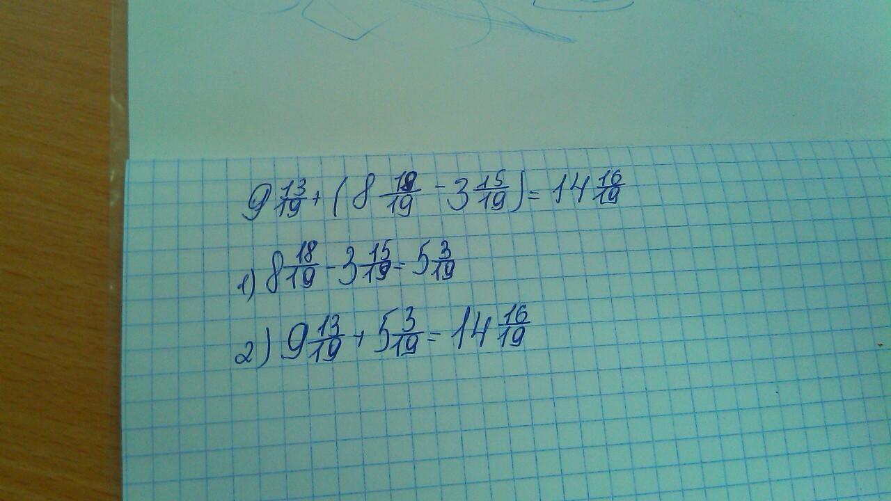 9 13/19+(8 18/19-3 15/19) =9 13/19+5 3/19=14 16/19