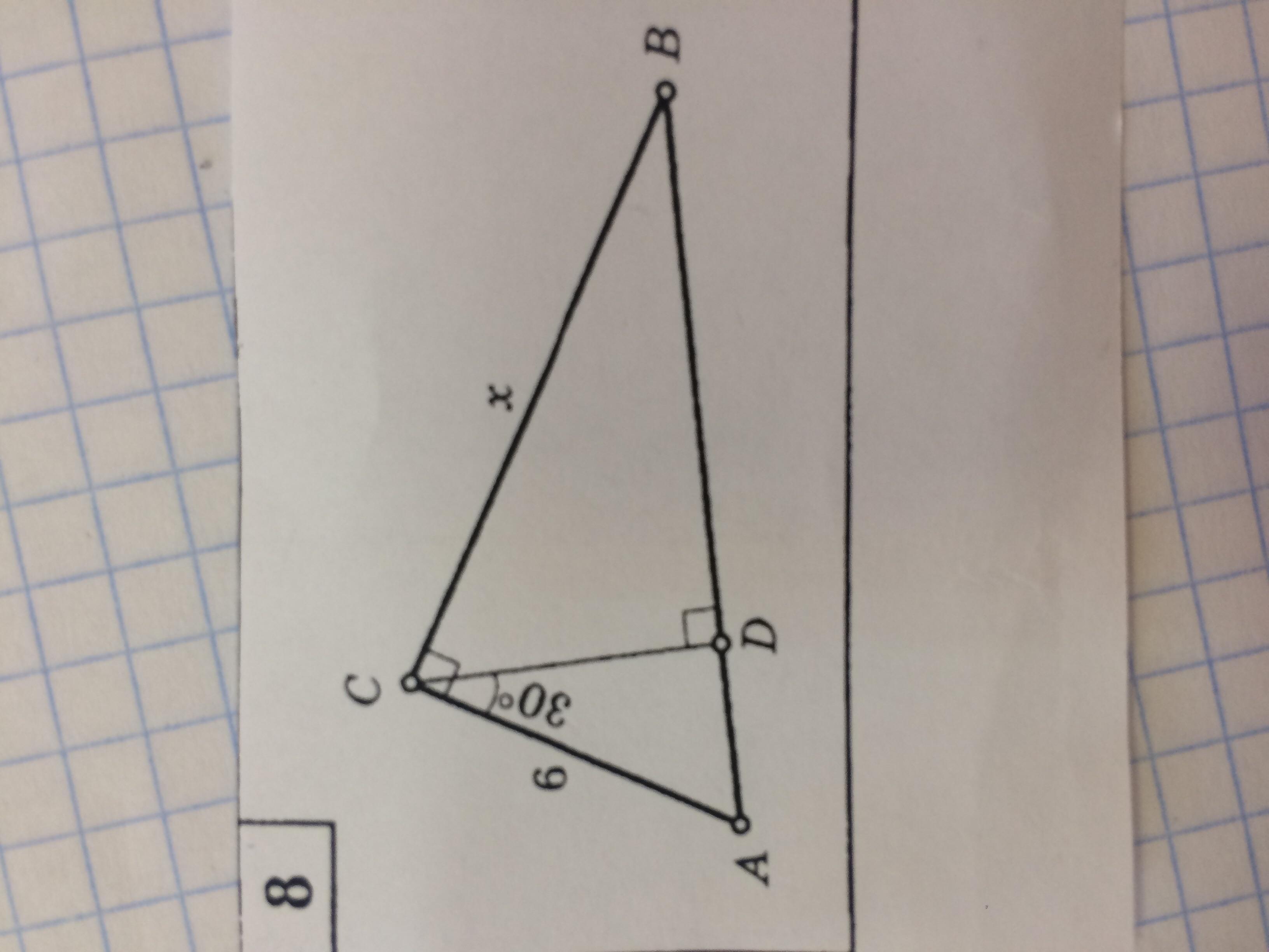 найдем угол BCD=90-30=60.