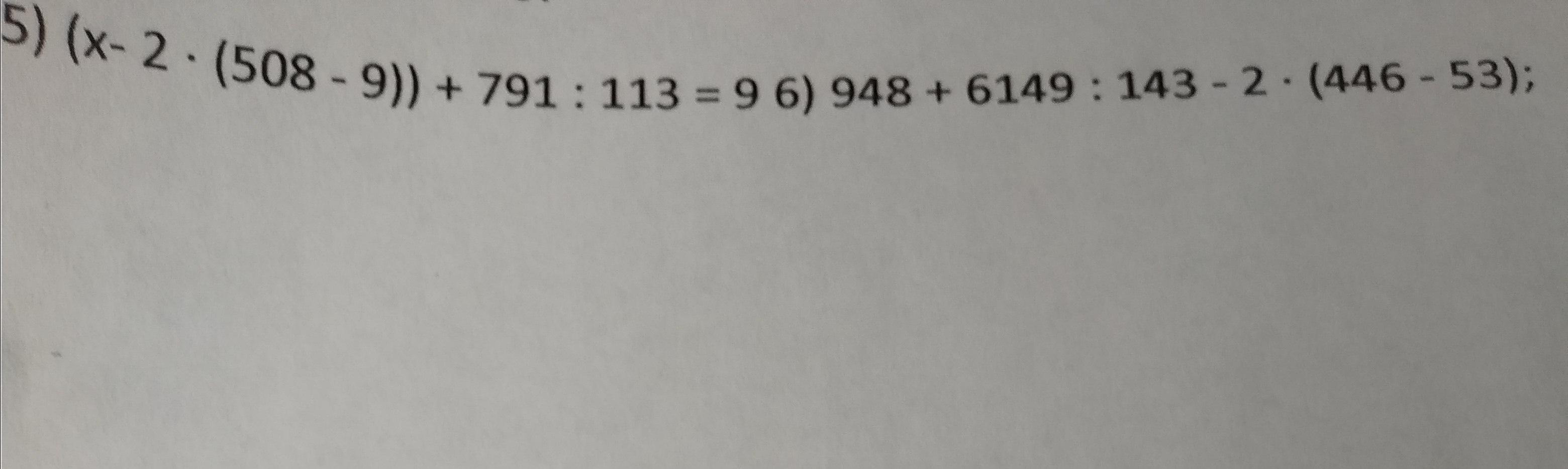 5). (x - 2 · (508 - 9)) + 791 : 113 = 9