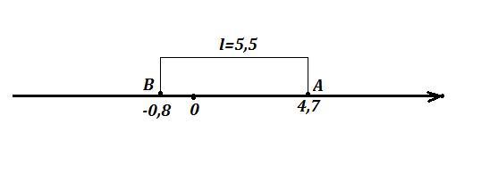 Если длина отрезка , то эта длина может быть равной , например, 5,5 единиц. Тогда надо найти координаты точки, отстоящей от точки А на величину, равную 5,5 единиц , слева от неё. Это будет точка В с координатой