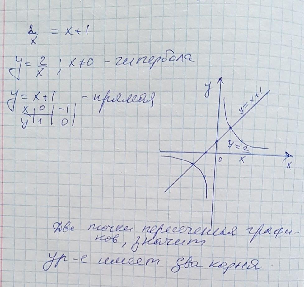 с помощью схематических графиков выясните, сколько корней имеет уровнение 2/х=х+1