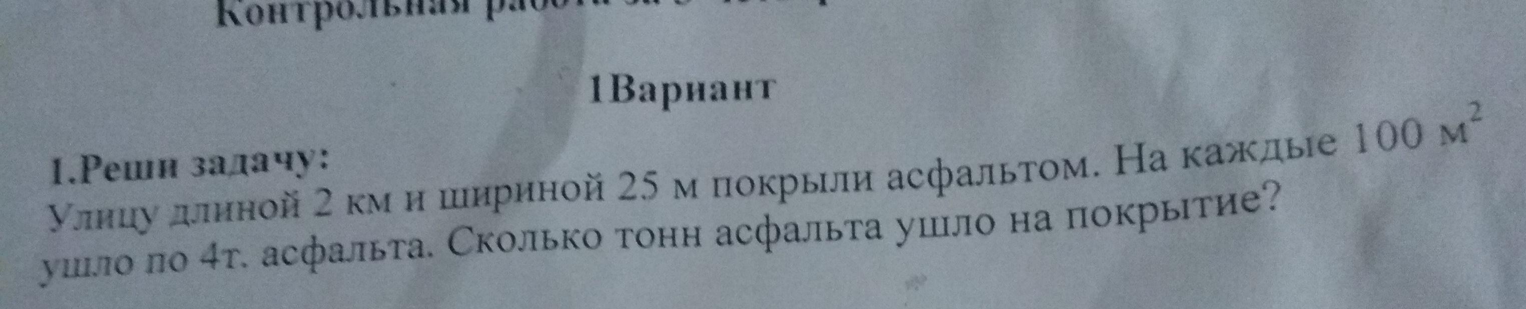 50000÷100=500×4=2000 (т) асфальта, ушло на покрытие дороги