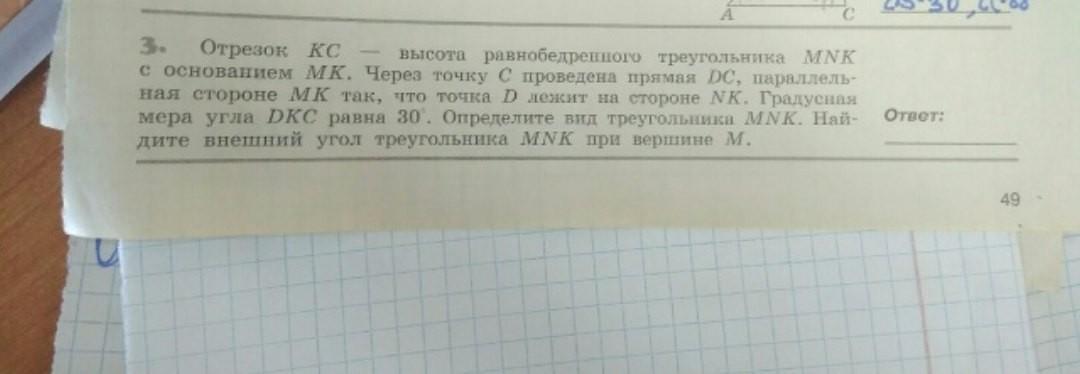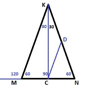 Угол MNK = 2*30° = 60° - равнобедренный Δ, углы равны.