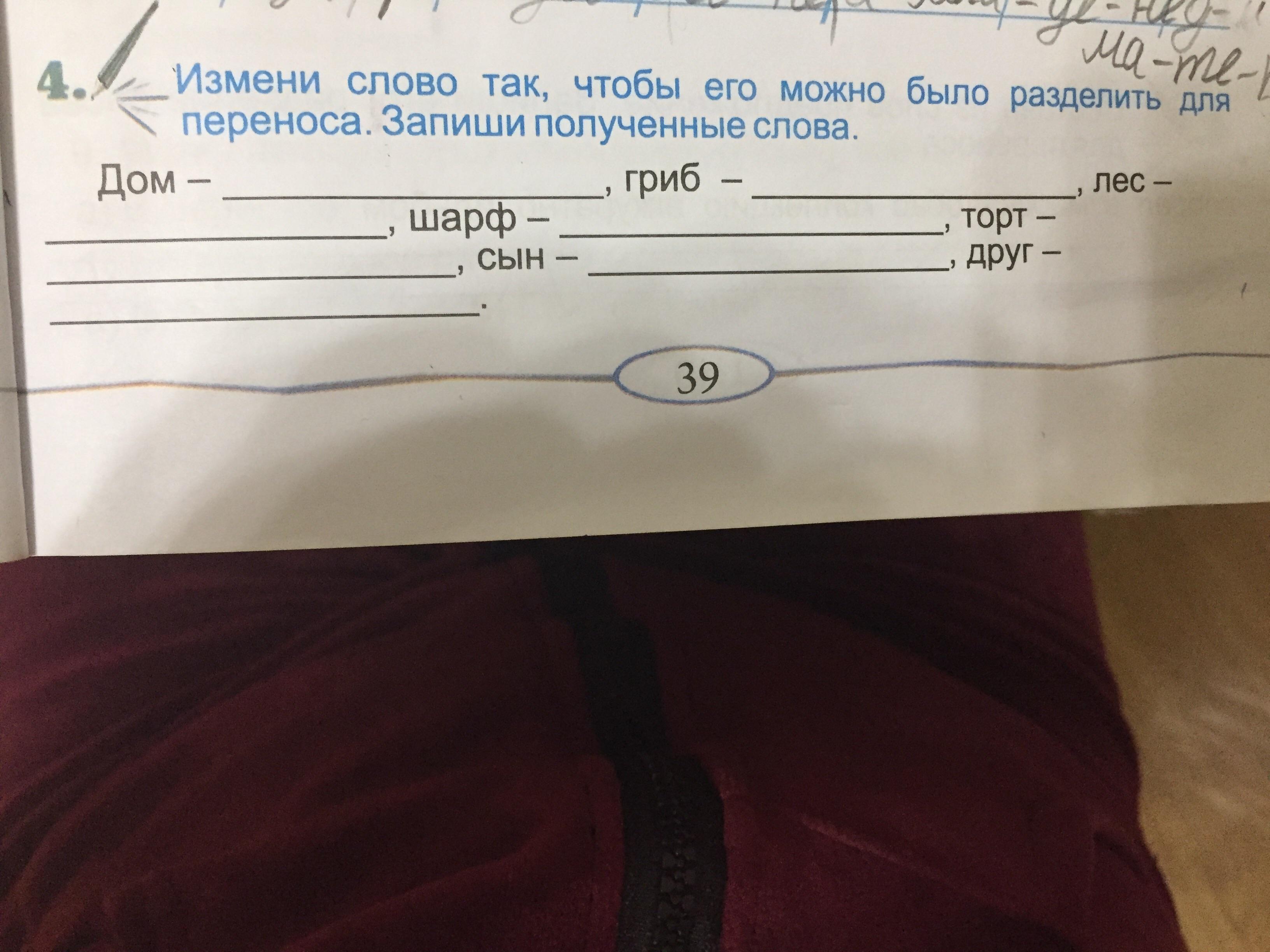 Дом - до-ма, гриб - гри-ба, лес - ле-са, шарф - шар-фа, торт - тор-та, сын - сы-на, друг - дру-га.