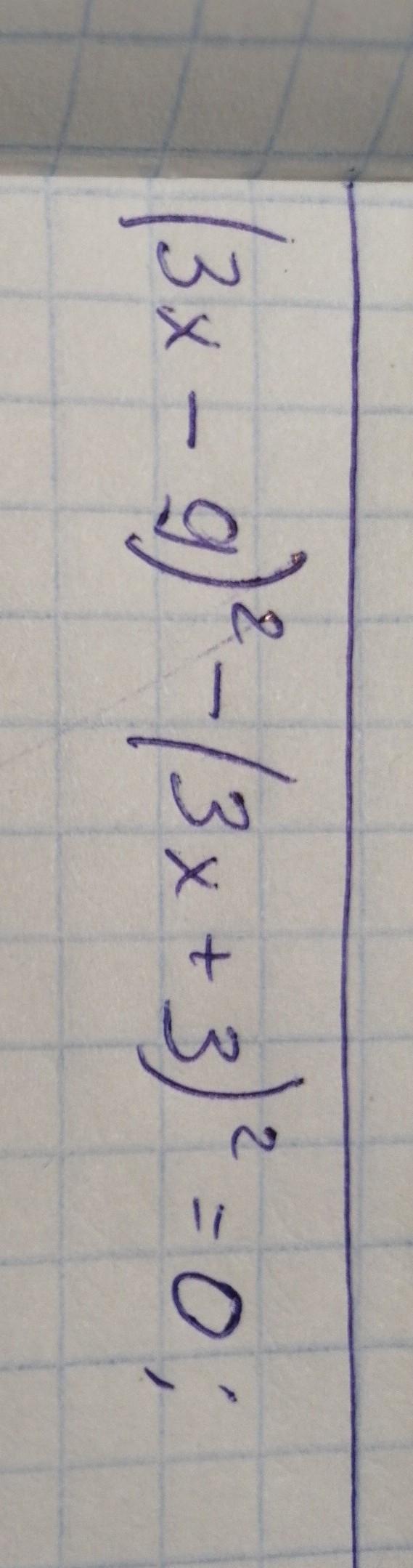 ( 3 * x ) ^ 2 - 2 * 3 * x * 9 + 9 ^ 2 - ( ( 3 * x ) ^ 2 - 2 * 3 * x * 3 + 3 ^ 2 ) = 0 ;