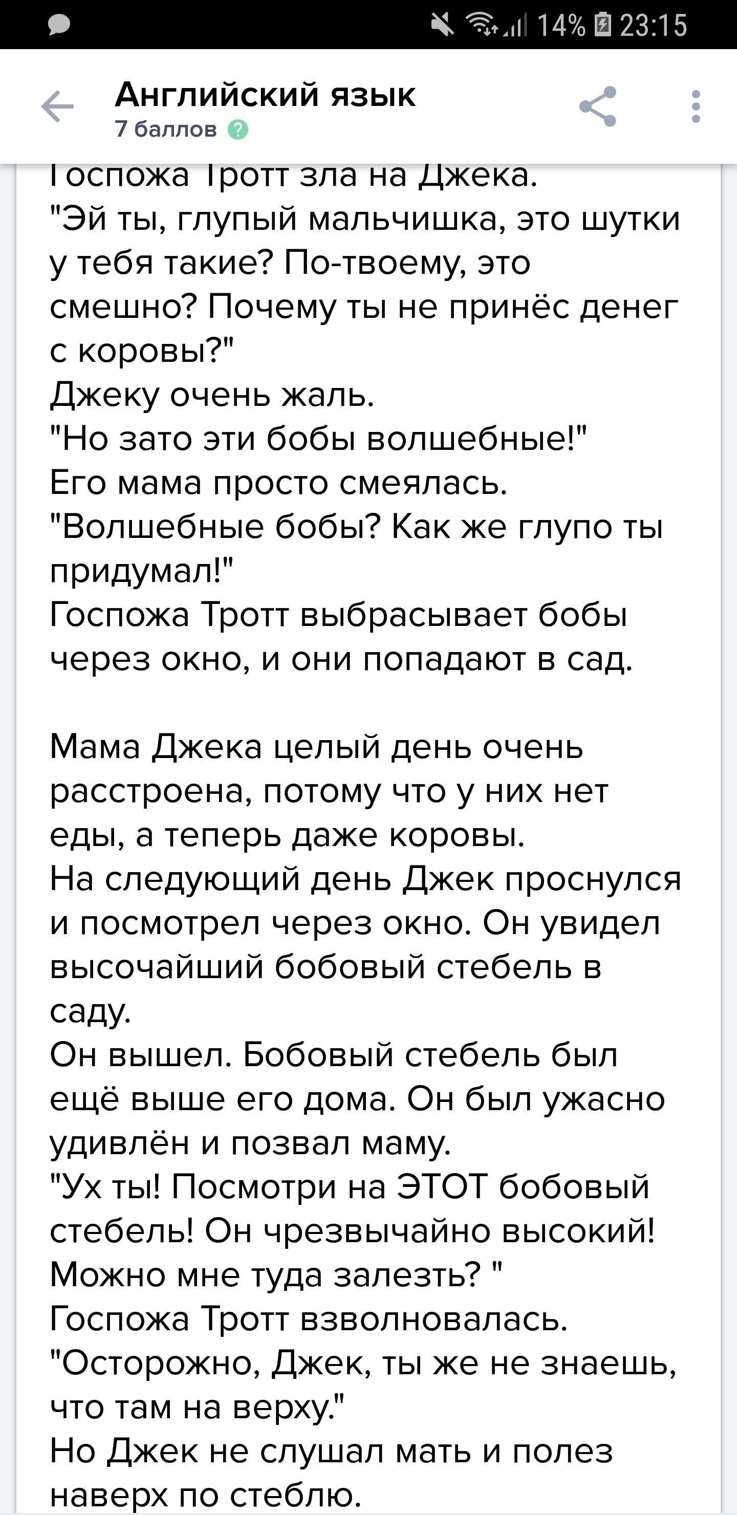 Перевод джек и бобовое зёрнышко английский в фокусе 5 класс перевод 7 главы