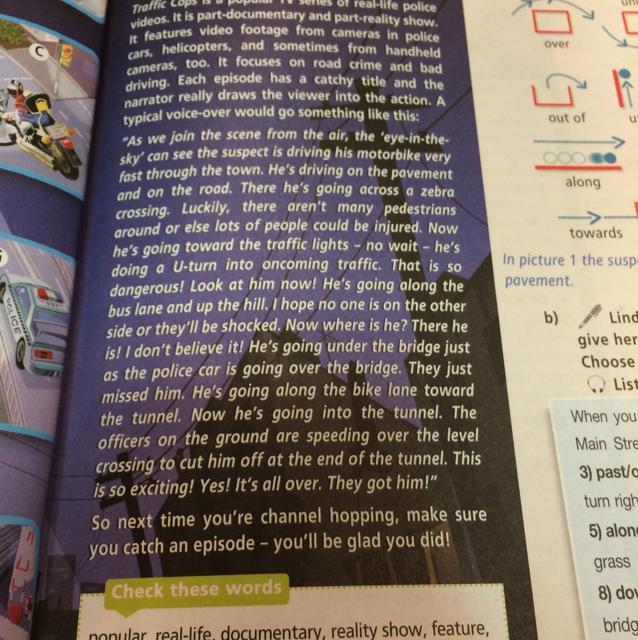 "Как мы присоединяемся к сцене из воздуха, глаз-в-небо вижу, подозреваемый ехал очень быстро на своем мотоцикле по городу. Он ехал по тротуару и по дороге. Там он идет по "зебре". К счастью, там не так много пешеходов вокруг, иначе много людей может пострадать. Сейчас он направляется в сторону светофора - не ждать - он делает разворот на полосу встречного движения. Это так опасно! Посмотрите на него сейчас! Он едет по автобусной полосе и вверх по склону. Я надеюсь, что никто не находится на другой стороне или они будут в шоке. Теперь где он? Вот он! Я не верю в это! Он идет под мостом, как полицейская машина едет по мосту. Они просто разминулись. Он едет по велосипедной дорожке в сторону тоннеля. Сейчас он идет в туннель. Офицеры на местах, превышение скорости на переездах, чтобы отрезать его в конце тоннеля. Это так здорово! Да! Все кончено! Они получили его!"