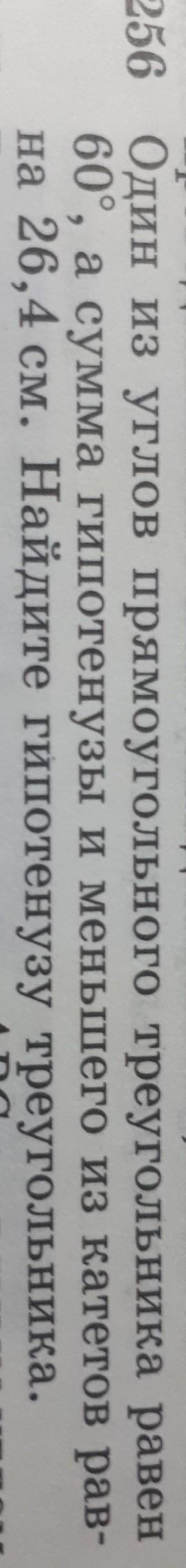 нужно найти неизвестный угол (180-(90+60)=30), который будет равен 30°. В прямоугольном треугольнике сторона, которая лежит напротив угла 90°, = половина гипотенузы. Пусть меньший катет будет x. Отсюда следует, что гипотенуза = 2х. В условии сказано, что сумма катета и гипотенузы = 26,4 см.