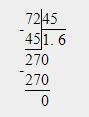 Для того чтобы выполнить деление в столбик преобразуем 7.2 и 4.5 в целое число. Для этого умножим делимое 7.2 и делитель 4.5 на 10.