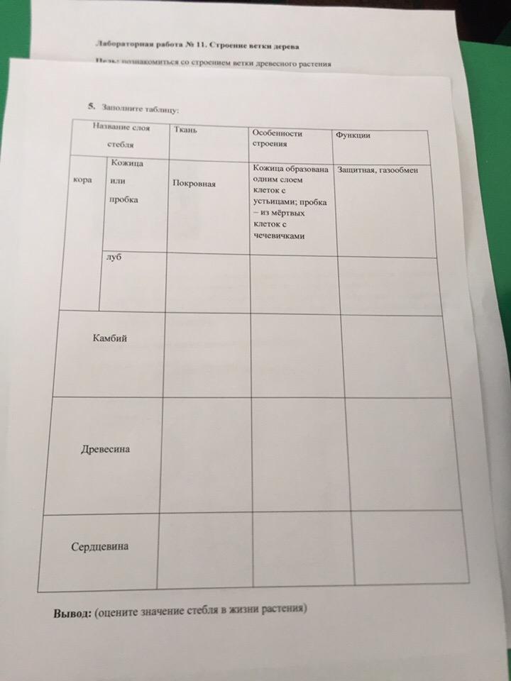 Ткань-образовательная,Особенности строения-В результате деятельности камбия образуется годичный прирост древесины, который можно хорошо различить у древесных растений и который называется годичным кольцом.Функция-обеспечивает рост стебля.