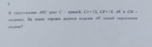 Медианы треугольника пересекаются в одной точке и делятся точкой пересечения в отношении 2:1