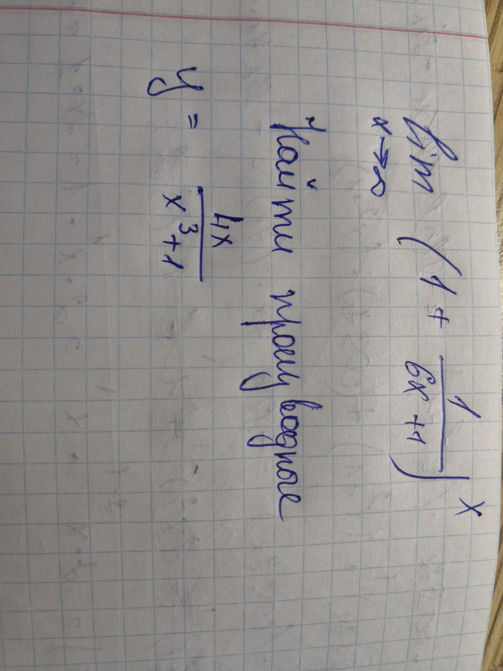 1); ; limlimits _{x to infty}(1+frac{1}{6x+1})^{x}=limlimits _{x to infty}(1+frac{1}{6x+1})^{(6x+1)cdot frac{x}{6x+1}}=\\=limlimits _{x to infty}Big ((1+frac{1}{6x+1})^{6x+1}Big )^{frac{x}{6x+1}}=e^{limlimits_{x to infty}frac{x}{6x+1}}=e^{frac{1}{6}}