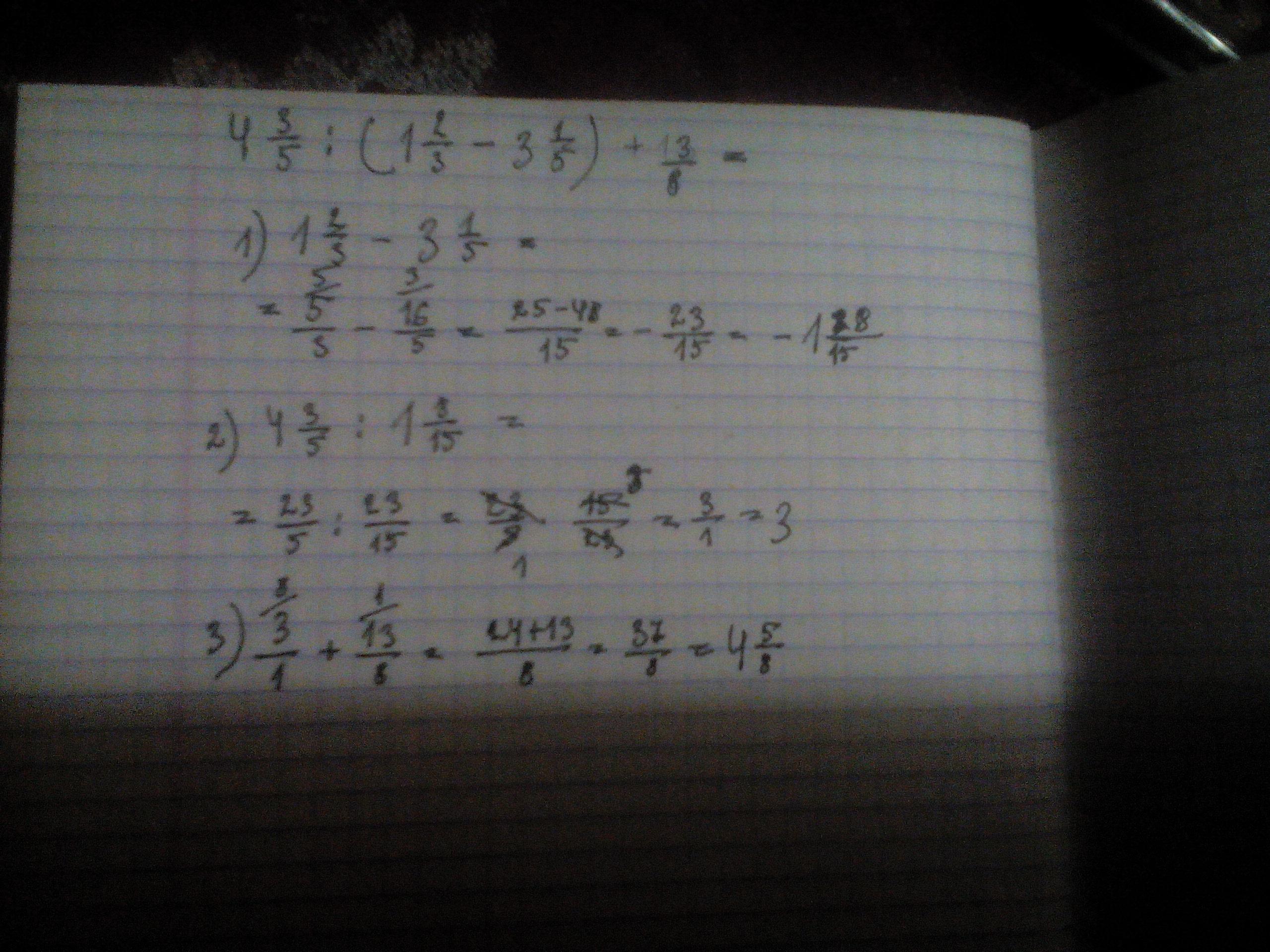 4_3/5 : (1_2/3-3_1/5) + 1_3/8 =-1_5/8