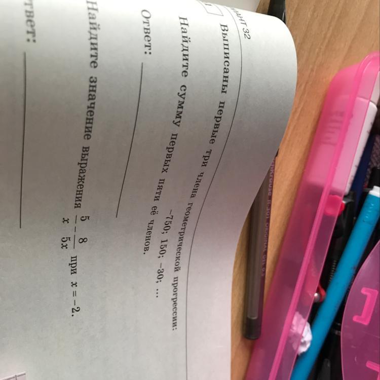 b1 =  - 750 \ b2 = 150 \ q =  frac{b2}{b1}  =  frac{150}{ - 750}  = -   frac{1}{5}  \ sn =  frac{b1( {q}^{n}  - 1)}{q - 1}  \ s5 =   frac{ - 750(( -  frac{1}{5})  {}^{5} - 1)  }{ -  frac{1}{5}  - 1}  =  - frac{3126}{5}  = - 625.2