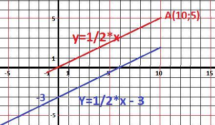 Точка А(10;5). Затем прямую опускаем на -3 - по оси ОУ и получаем