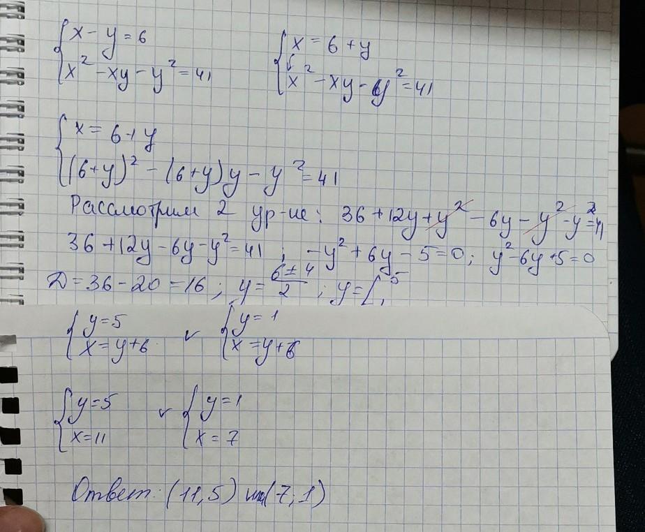║ х² - ху - у² = 41,