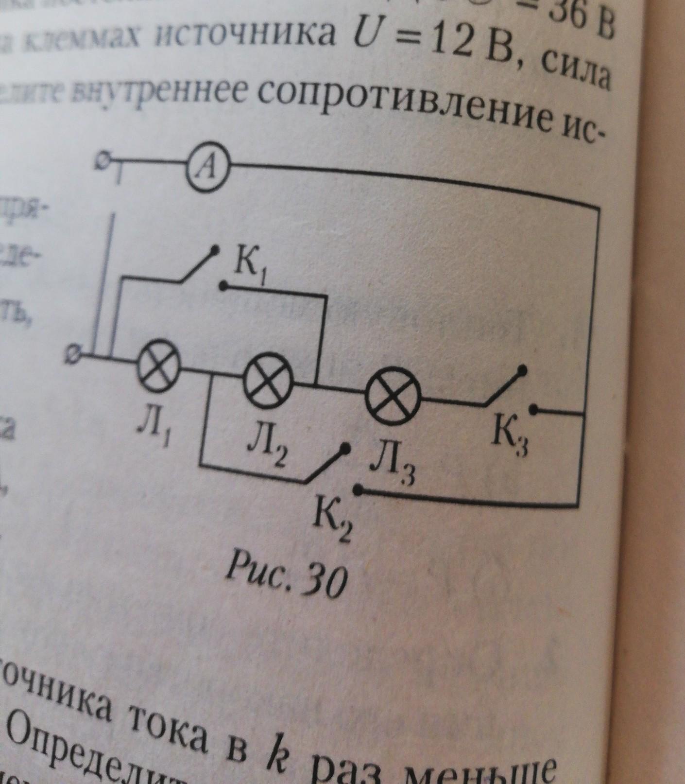 К участку цепи приложено напряжение u=12. Определите, какие лампы будут гореть если замкнуть ключи К1 и К3. Только пожалуйста, если не знаете, не пишите и не копируйте с других ответов, там неправильно.