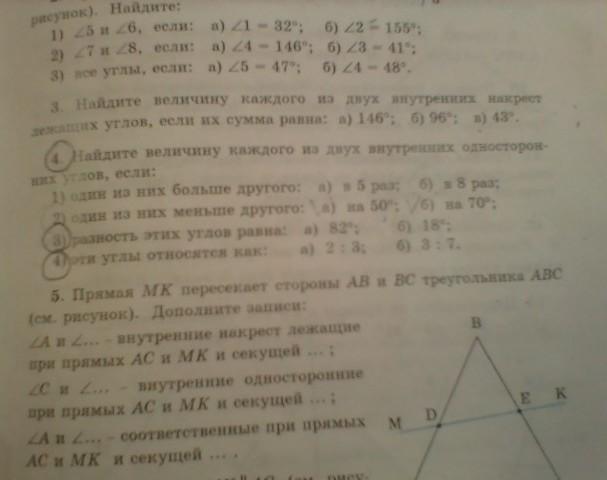 3)а) ∠1 и ∠2 внутренние односторонние. их разность = 82°, а это значит, что один угол больше другого на 82°. Найти эти углы.