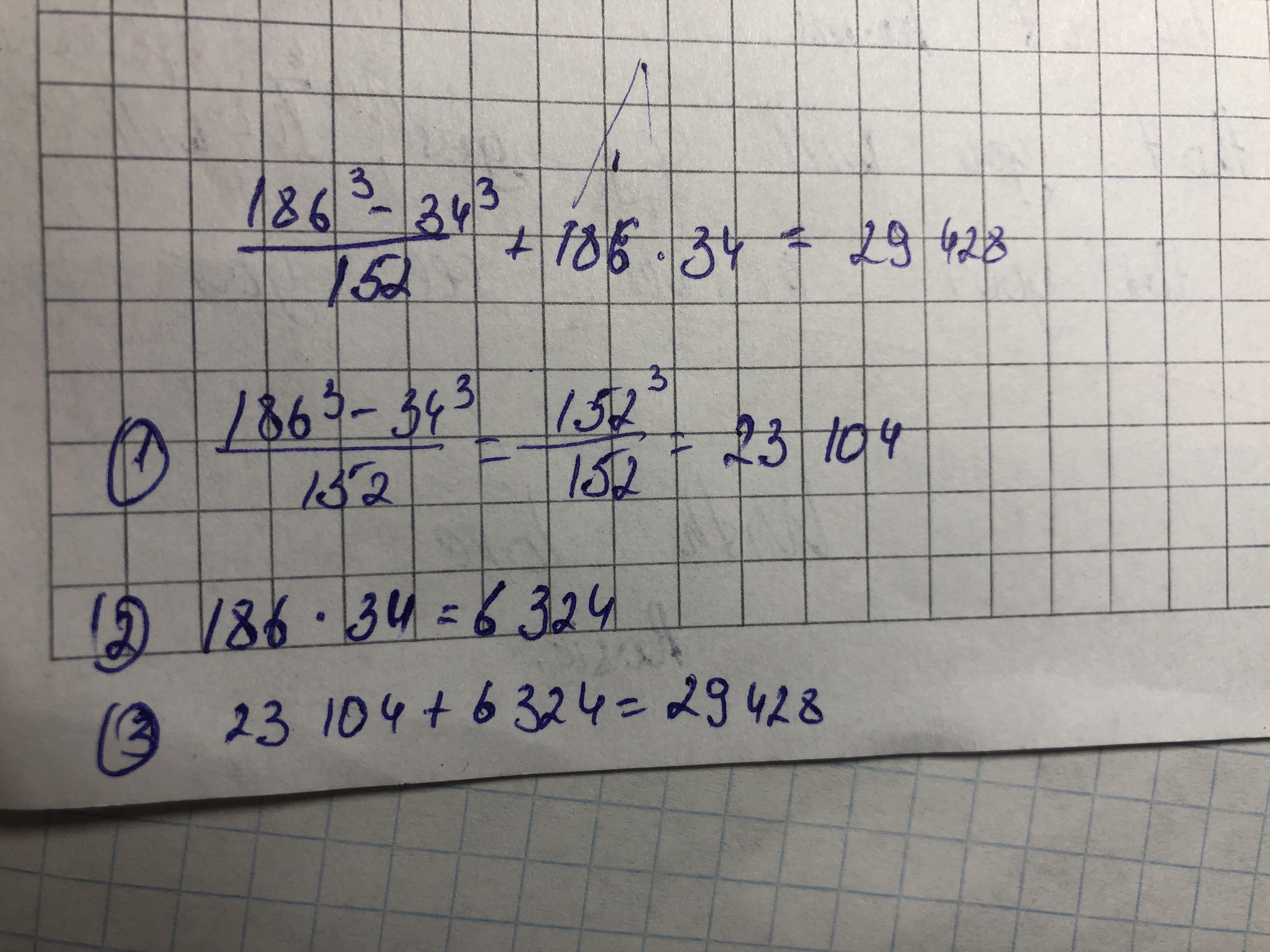 186^3 - 34^3 6395552 ------------------ +186 *34= -------------- + 186*34= 42076 +6324=48400