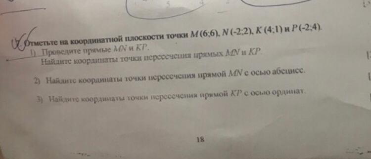 Найдите координаты точки пересечения прямых МN и КР.