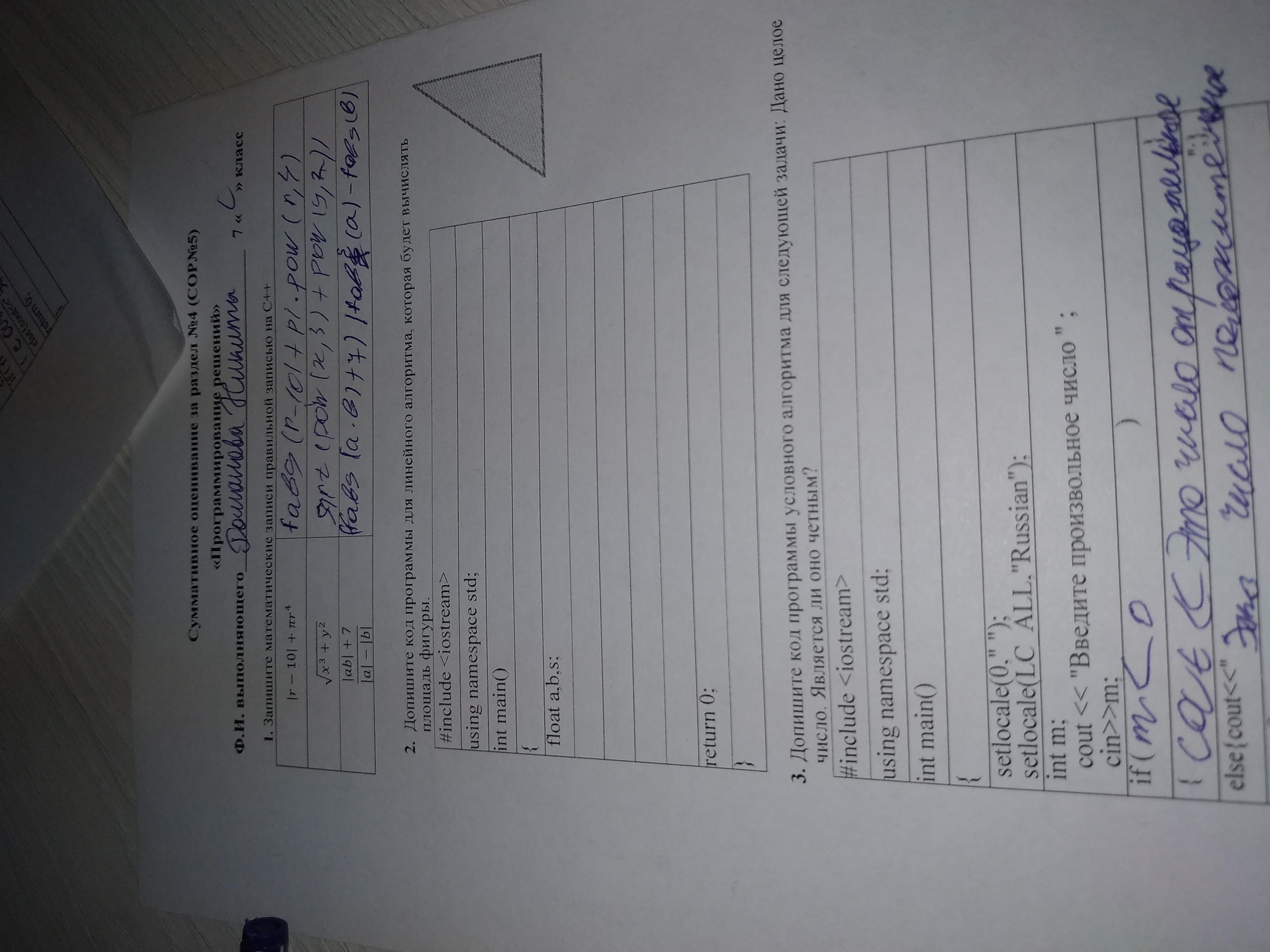 Допишите код программы для линейного алгоритма которая будет вычислять площади фигур