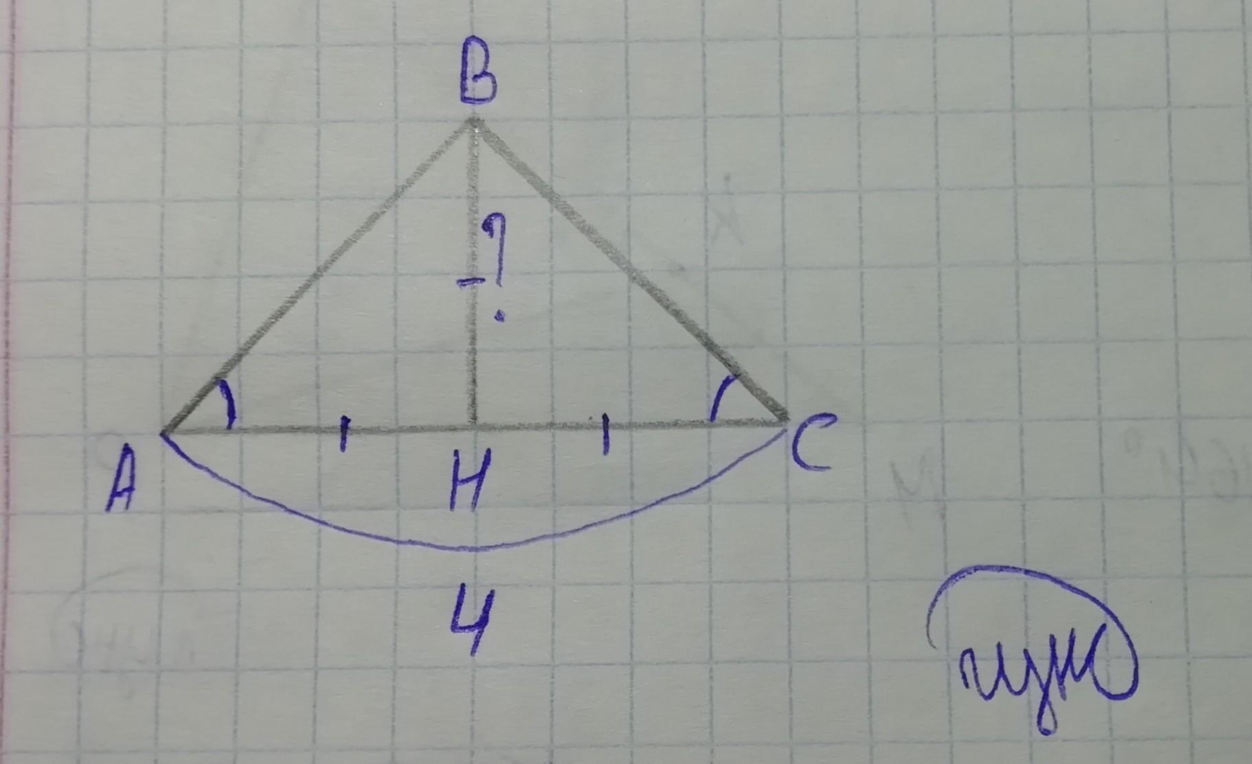 Рассмотрим ΔABH: ∠H = 90°, ∠A = 45°
