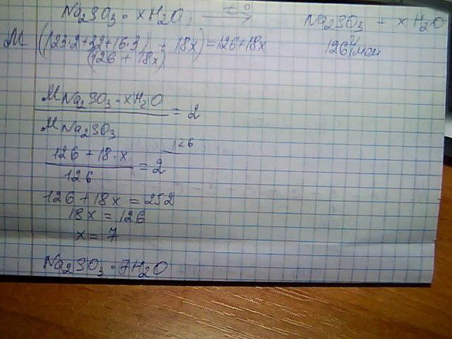 При обезвоживании кристаллогидрата сульфита натрия масса его уменьшилось в 2 раза. Установите формулу кристалогидрата