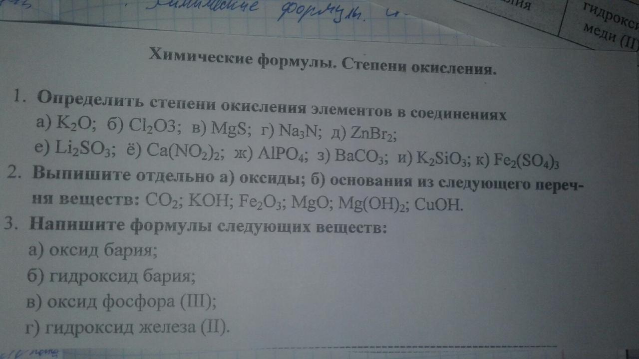 1. Оксиды: P₂O₅(оксид фосфора V), CuO(оксид меди II)