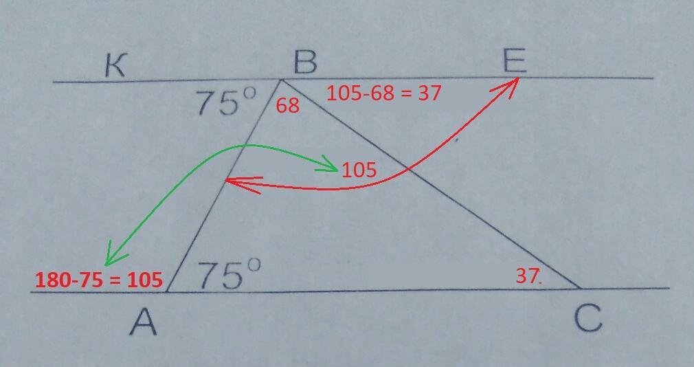 Ответ: Углы треугольника: 75° и 68° и 37°