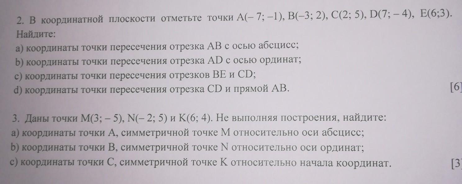 а) координаты точки пересечения отрезка АВ с осью абсцисс;