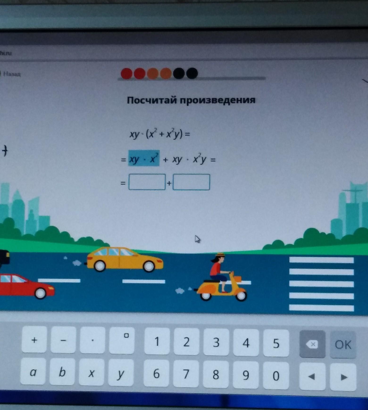 xy * (x² + x²y) = xy * x² + xy * x²y = x³y + x³y²