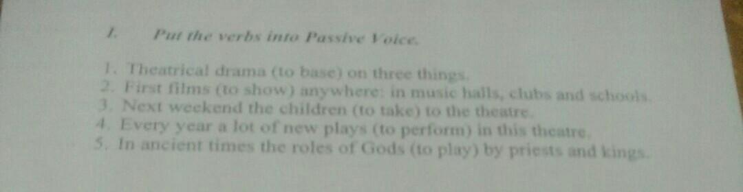 1 is based 2 were shown 3 will be taken 4 are performed 5 were played