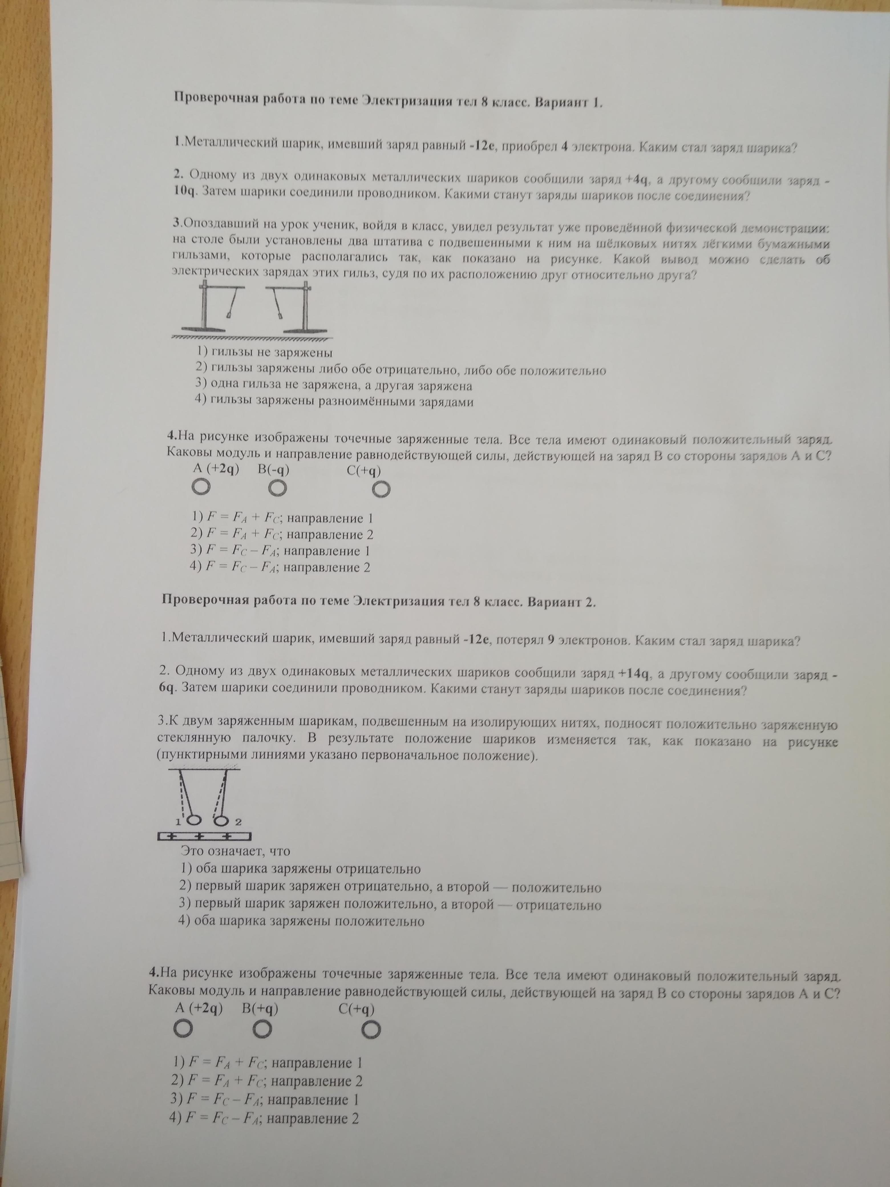 3. 3 (однополюсовые тела отталкиваться, а разнополюсовые - притягиваются, по этом причине 1 шарик пытался оттолкнуться, значит он положительный, а другой пытается притянутся - он отрицательный )