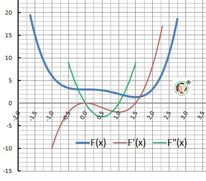 Корень производной - точки перегиба - Х=0, Х = 1.
