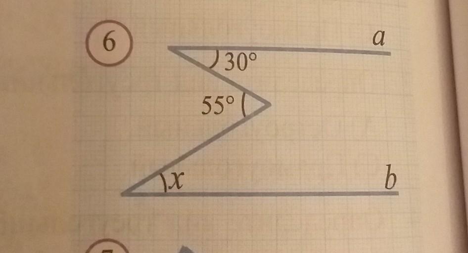 х=25 град. 1)180-55=125( гр) 2)180-(125+30)=25(гр)