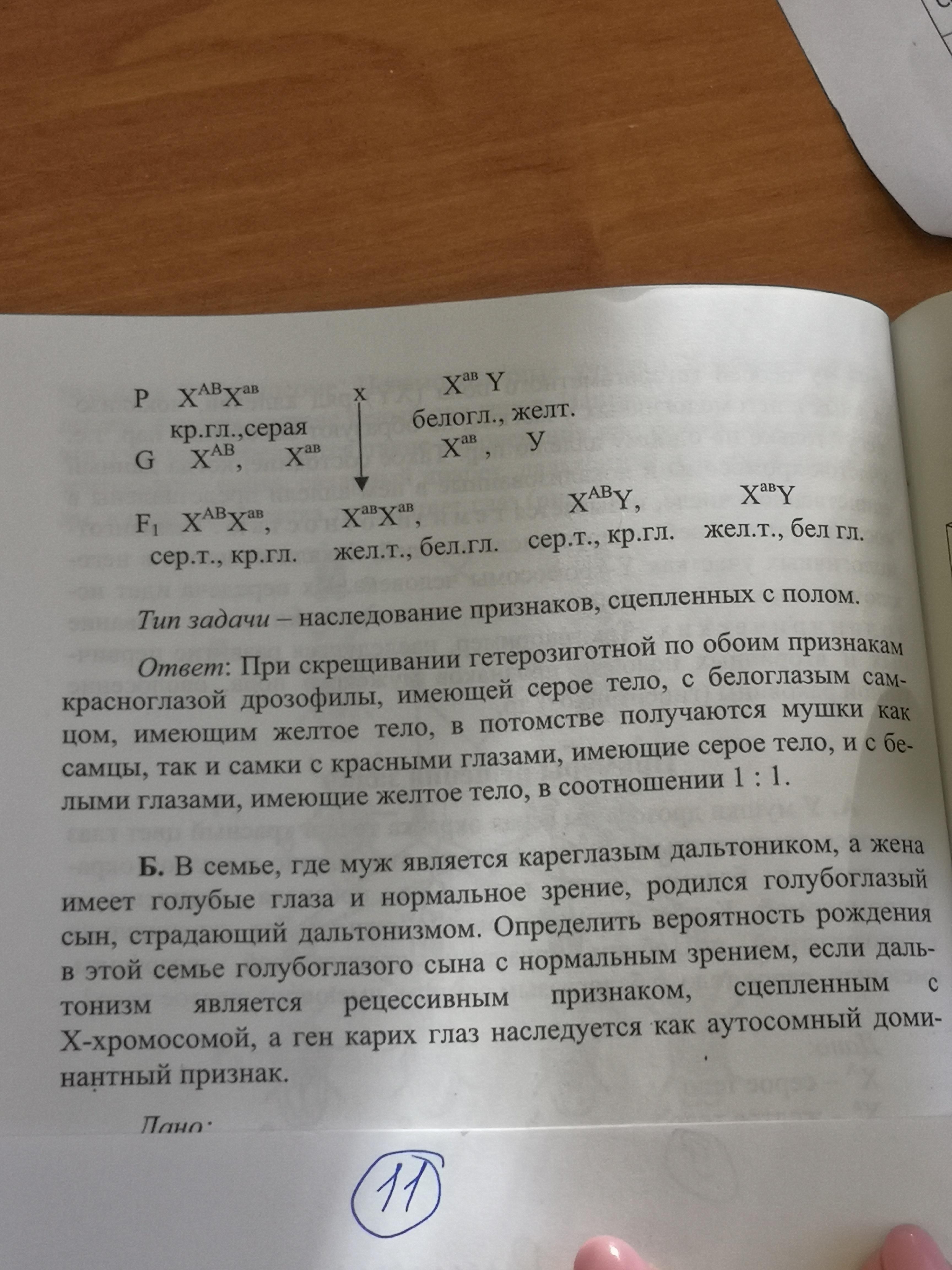 XdYсс. Поскольку ген патологии цветоразличения он получает вместе с материнской хромосомой, следует сделать вывод о гетерозиготности здоровой женщины по гену дальтонизма.
