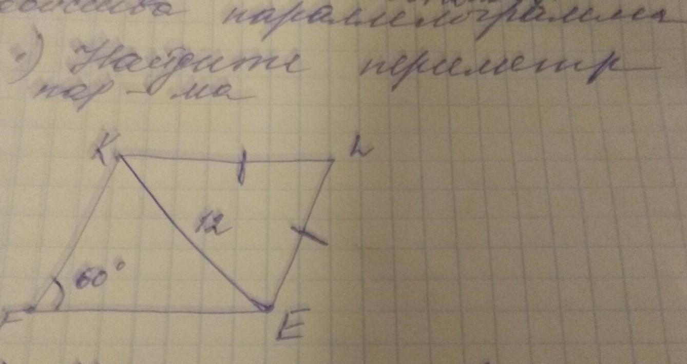 т.к. это параллелограмм, то угол F равен углу L, следовательно треугольник KLE разносторонний, следовательно KL=LE=12, следовательно периметр параллелограмма равен 12+12+12+12=48