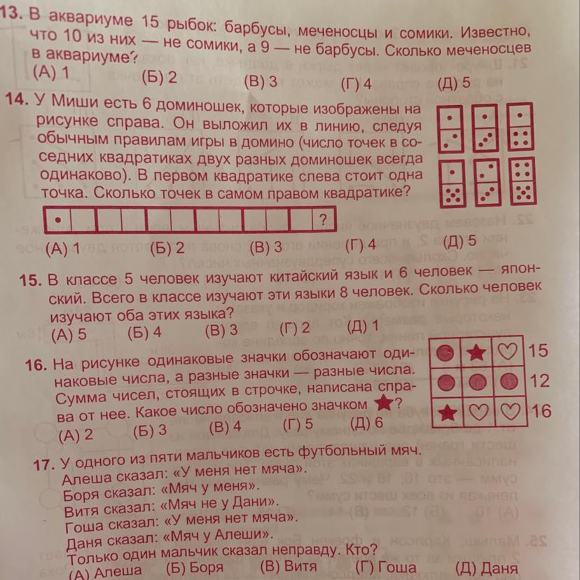 3) 10 - 4 = 6 барбусы