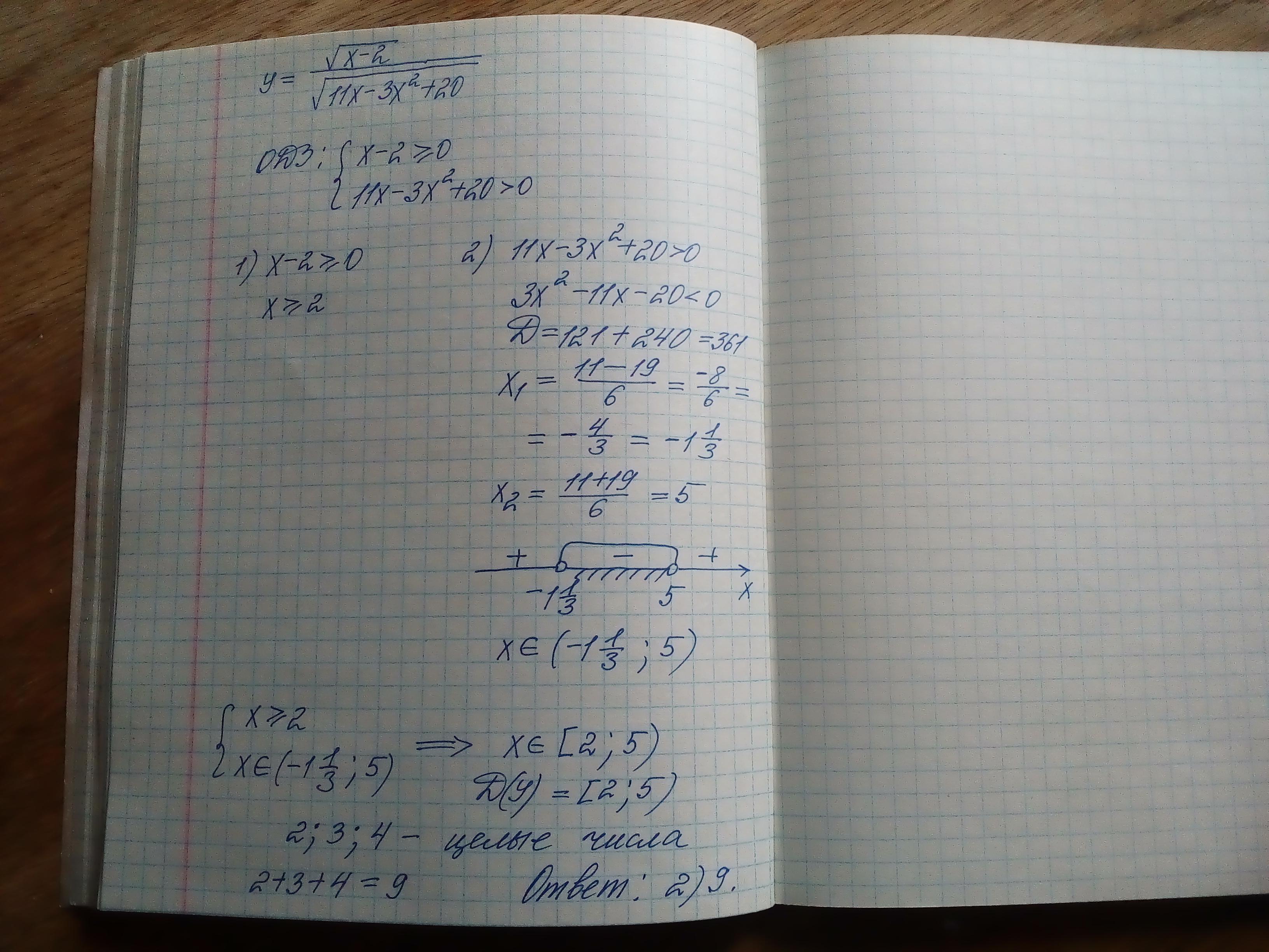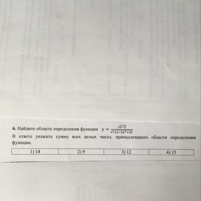 в ответе укажите сумму всех целых чисел, принадлежащих области определения функции.