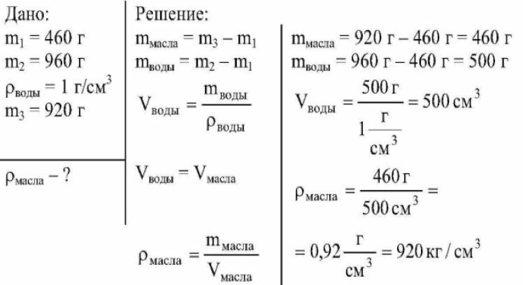 Плотность масла запишите в килограммах на кубический метр.
