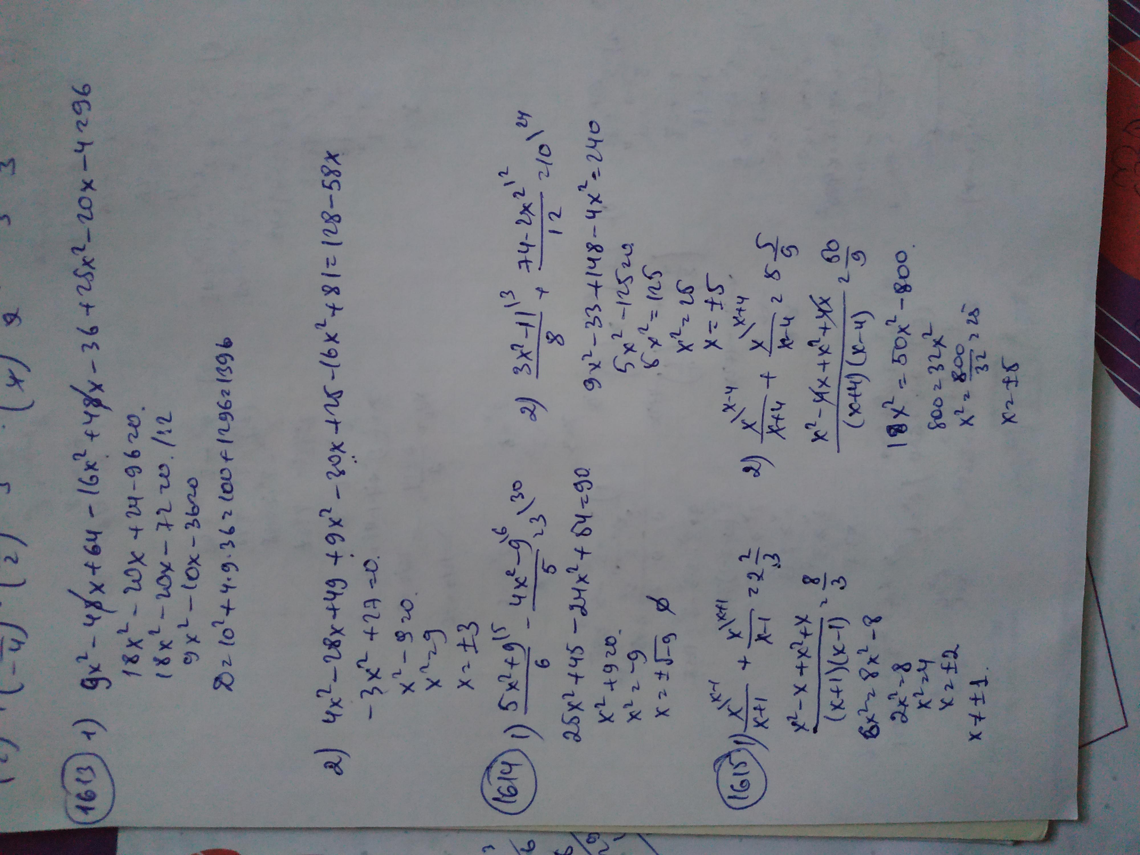 1614) 9x²-48x+64-16x²+48x-36+25x²-20x-4-96=0