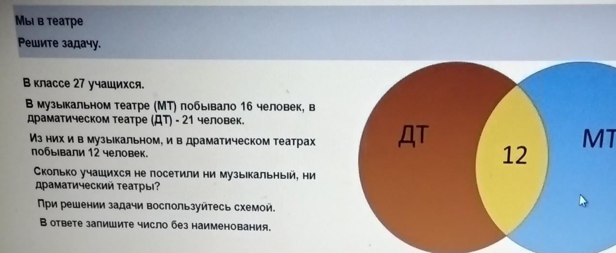 4.)27-21=8(у)-Ни посещало ни драматический театр.